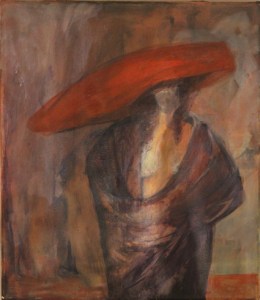 Nr. 54 “Frau mit Hut” 38×33 cm / Öl auf Baumwolle